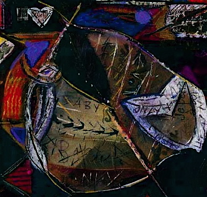 Medium: Acrylic, permanent ink, collage, on canvas with archival varnish.