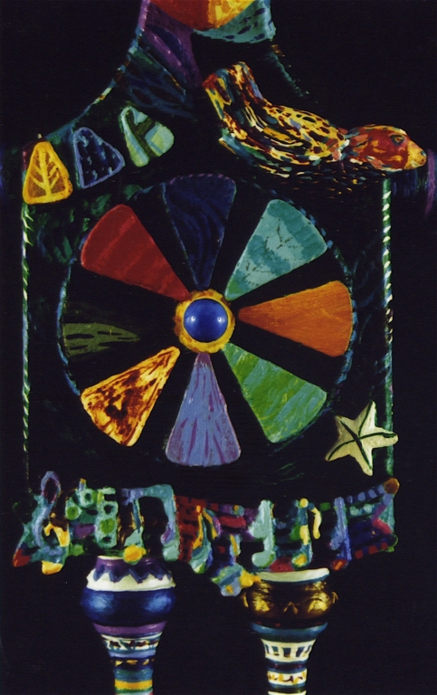 Medium: acrylic on/with objects, wood, rubber, plastic, metal and archival varnish.