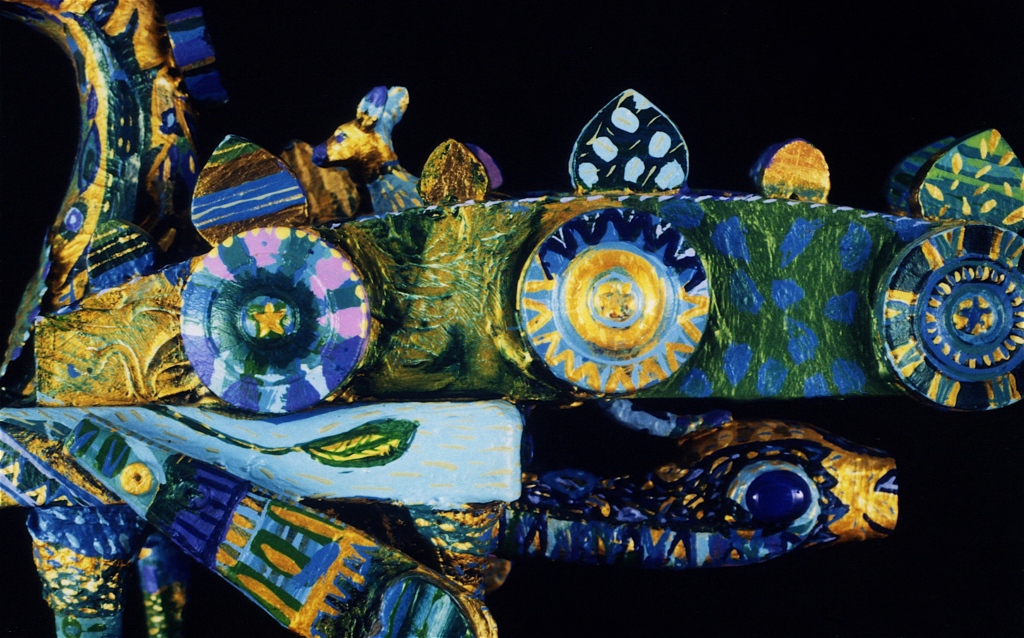 Medium: acrylic on/with objects, wood, rubber, plastic, metal and archival varnish.
