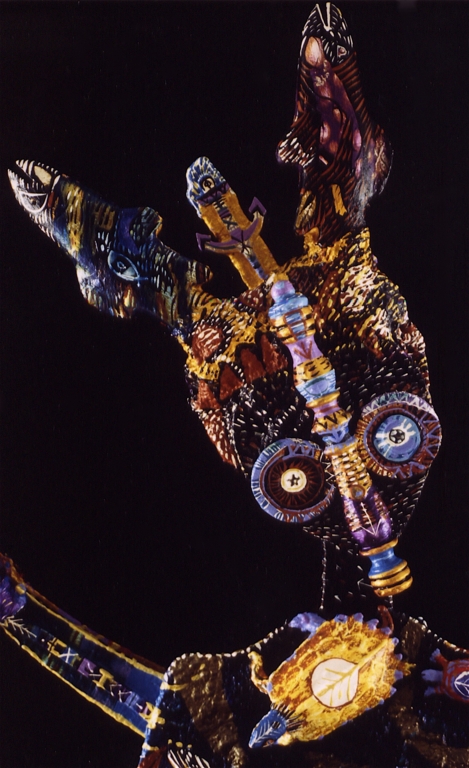 Medium: acrylic on/with objects, wood, rubber, plastic, metal and archival varnish.